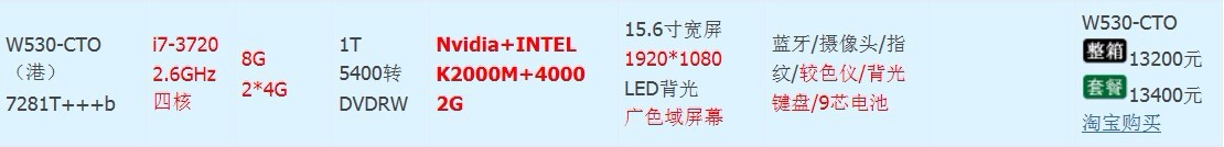 i7-3720/8G/1T/DVDRW/NvidiaK2000M/15.6寸宽屏1920*1080/蓝牙/摄像头/指纹/较色仪/背光键盘/9芯电池