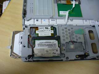 图上最左边抽出来的就是硬盘了,怀疑是不是机器侧面有一个小盖板,可能有1,2个螺丝松开,打开盖板,把硬盘抽出来